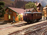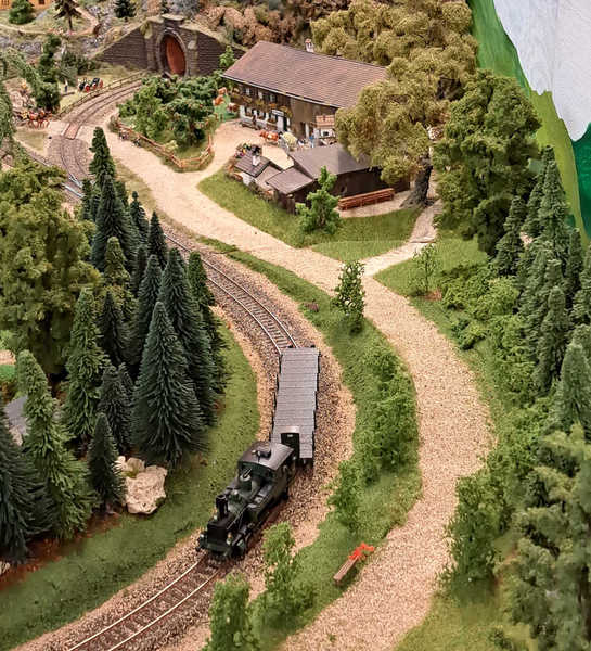 Mit der Jugend bauen wir ein Diorama. Aus einem Steinbruch werden mit einer Schmalspurbahn werden die Steine in eine Fabrik gefahren. Anschließend fährt der leere Zug zurück in den Berg, um neue Steine zu laden.