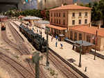 Unser Alexander ist fleißig am Bau des Hintergrundes für unsere mobile Anlage. Wenn die Bretter fertig sind, wird Heinz für die drei Module des Bahnhof Landsberg am Lech die Stadt Landsberg mit der Katharinenbrücke zu malen. Auf den restlichen 3 Modulen wollen wir eine Fototapete kleben.